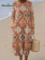 Women's Vintage Flower Art Print Crew Neck Knitted Sweater Dress
