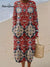 Women's Vintage Flower Art Print Crew Neck Knitted Sweater Dress