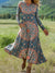 Women's Vintage Flower Art Print Long-sleeved Dress