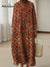 Women's Vintage Flower Pattern Art Print V-neck Knitted Sweater Dress