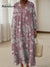 Women's Vintage Flower Patterns Art Print V-neck Knitted Sweater Dress