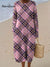 Women's Vintage Plaid Pattern Art Print Casual Cotton Knitted Dress