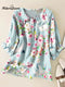 Women's Lovely Floral Art Print Casual Peter Pan Collar Cotton Shirt