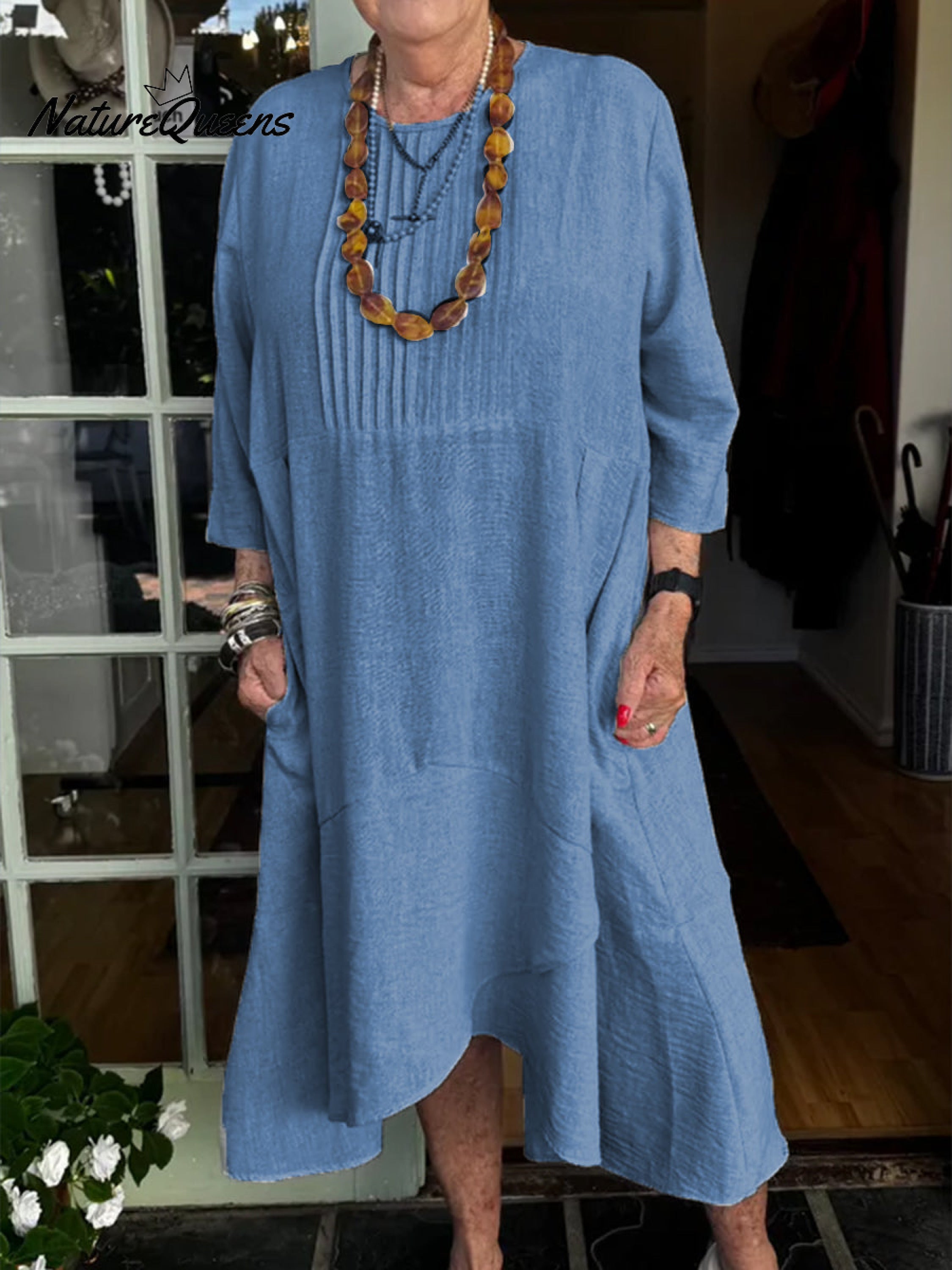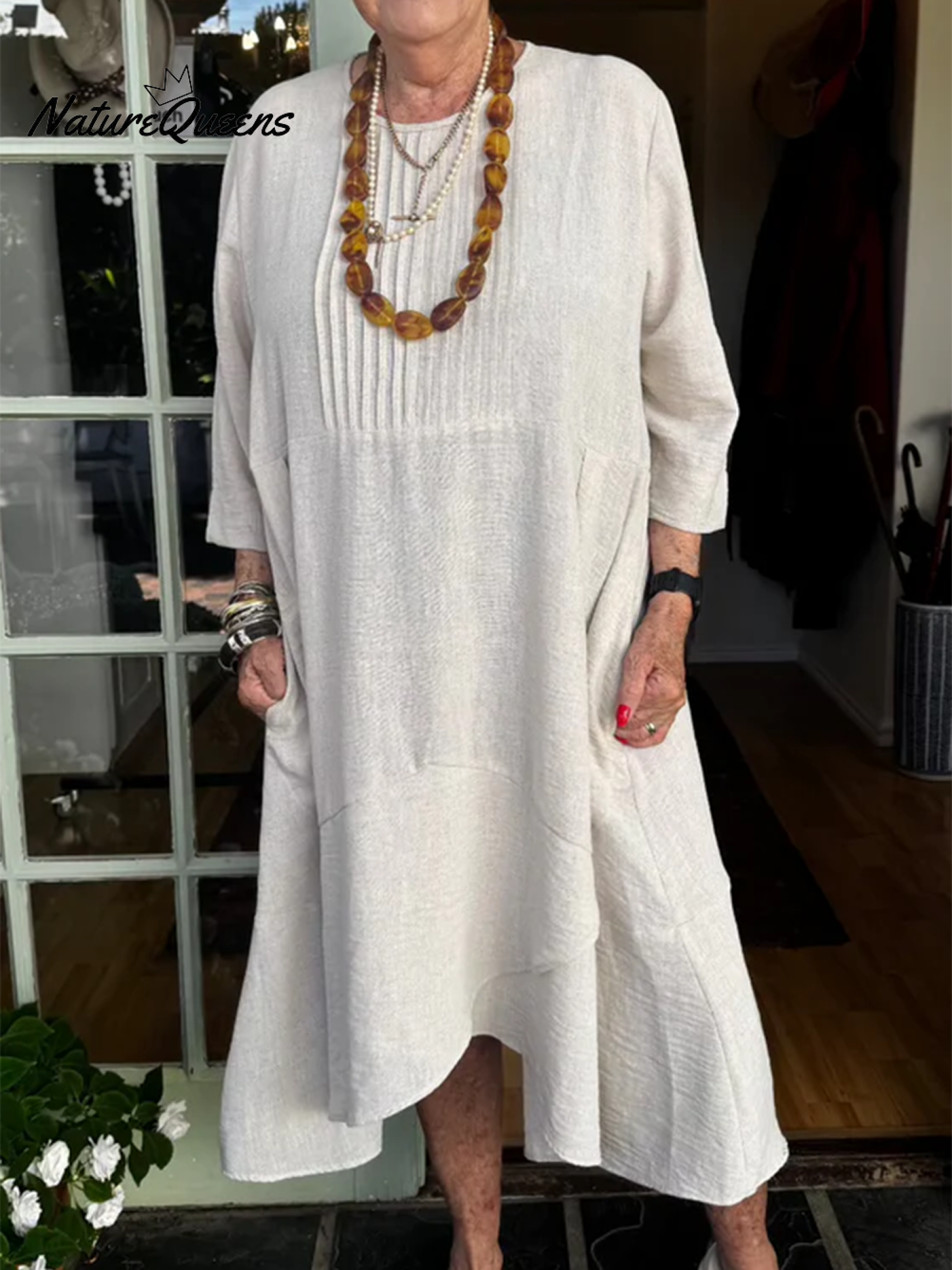 Our easy-to-wear dress is crafted from 3.5 meters of premium linen blend for comfort and effortless sophistication.