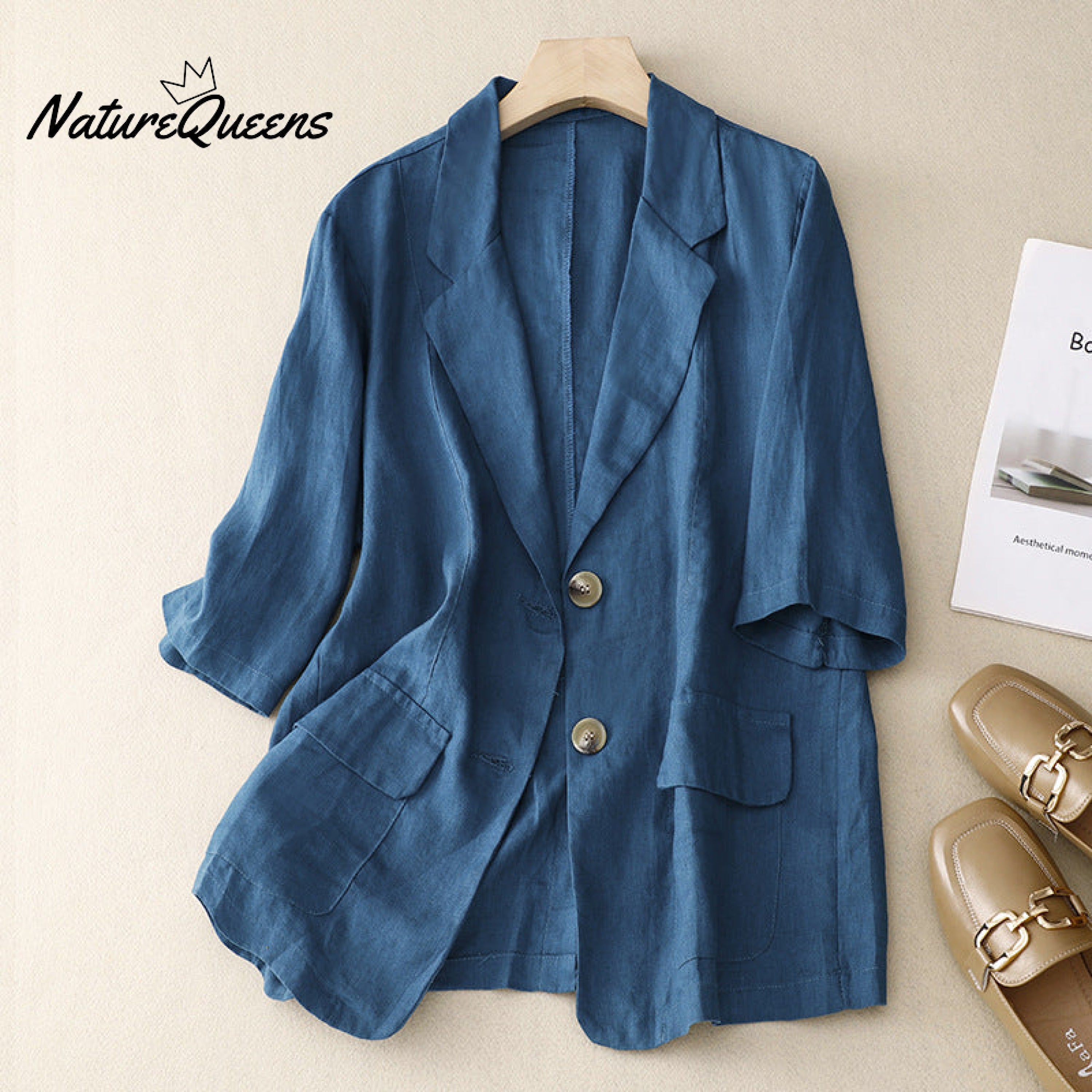 All-match casual button-down cotton linen jacket