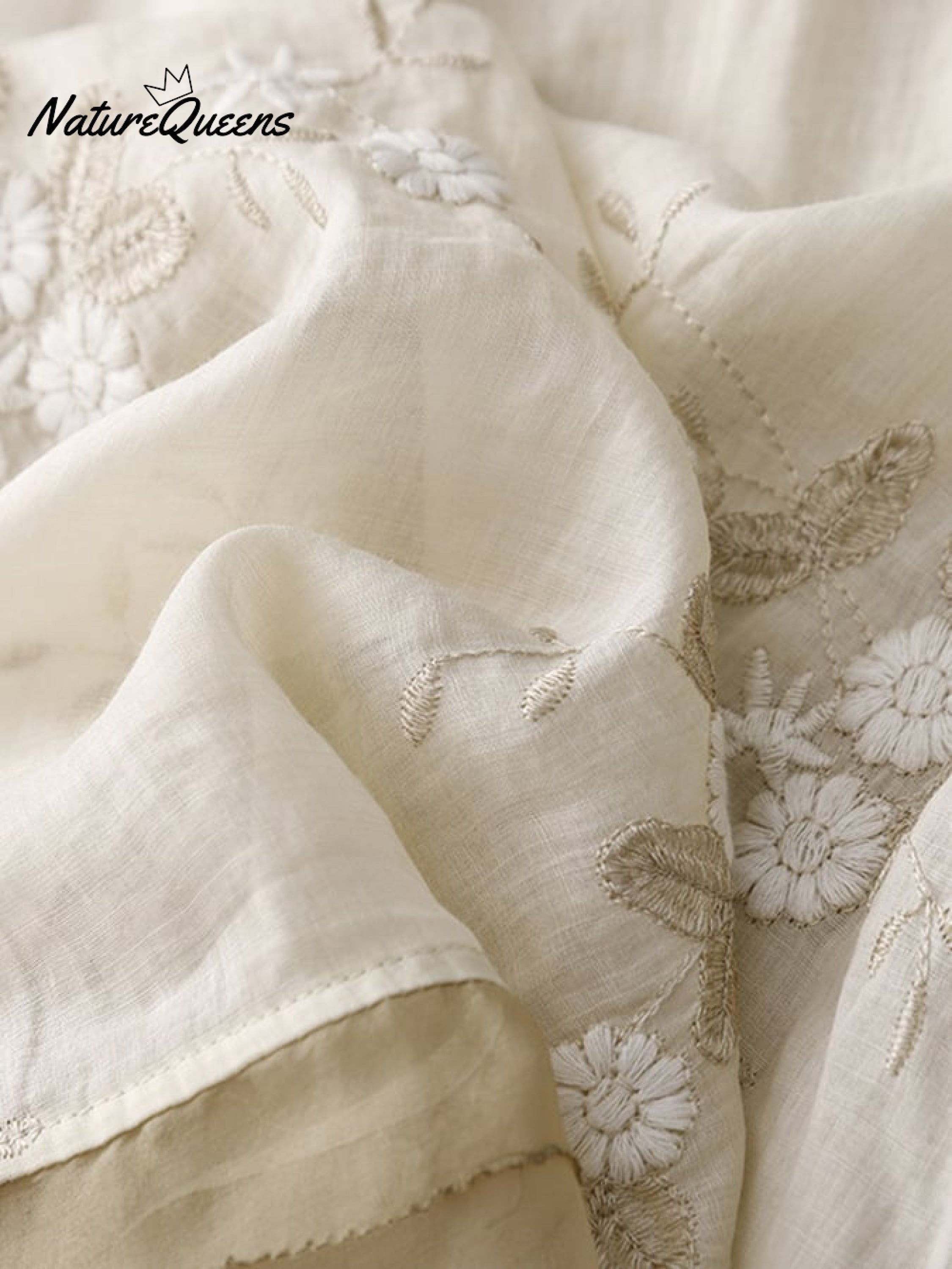 Art Retro Embroidery 3/4 Sleeve Patchwork Shirt