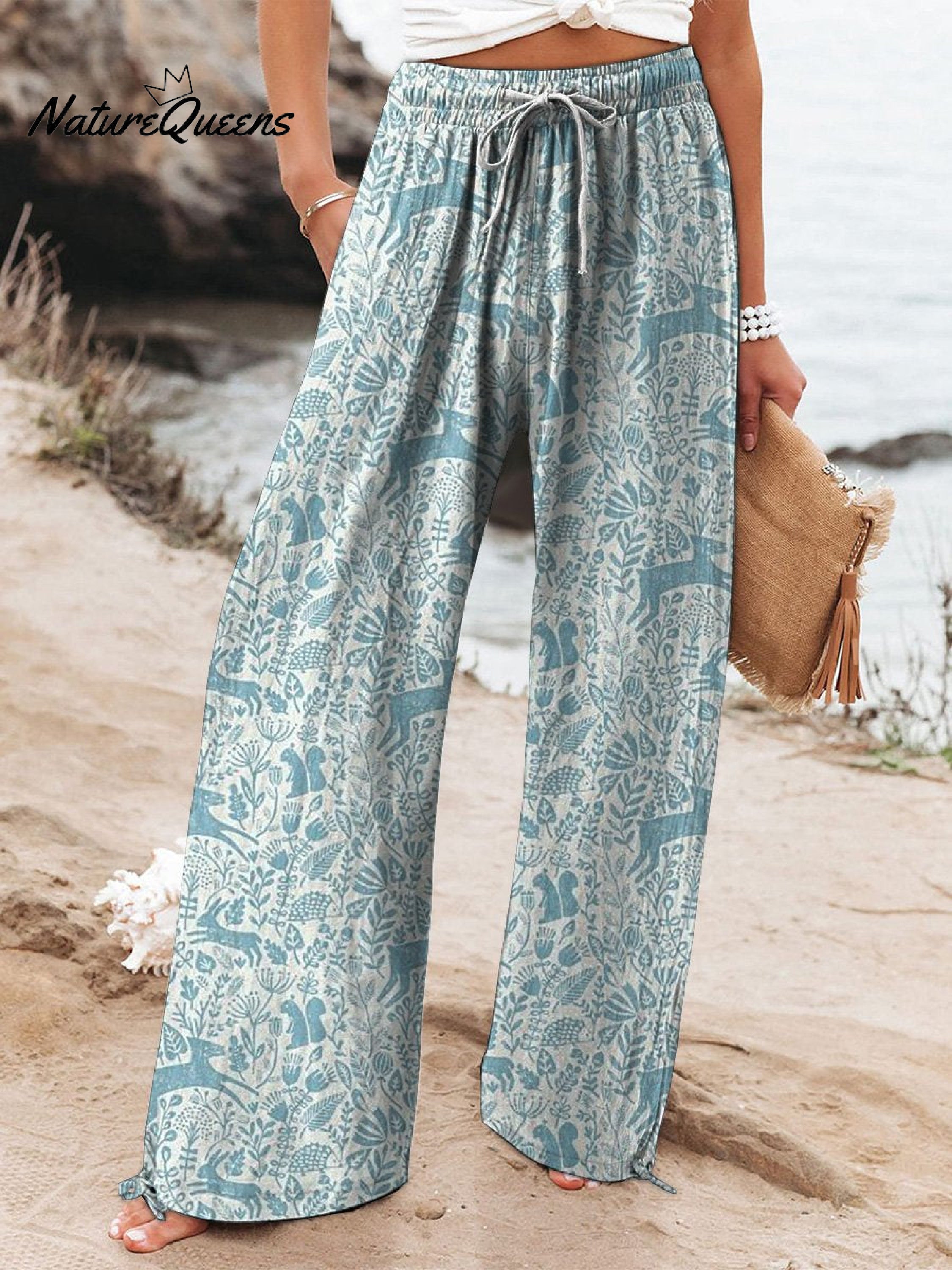 Batik Style Spring Woodland Pattern Printed Women's Cotton And Linen Casual Pants