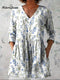 Boughs And Robin Birds Pattern Printed Women's Casual Cotton And Linen Shirt