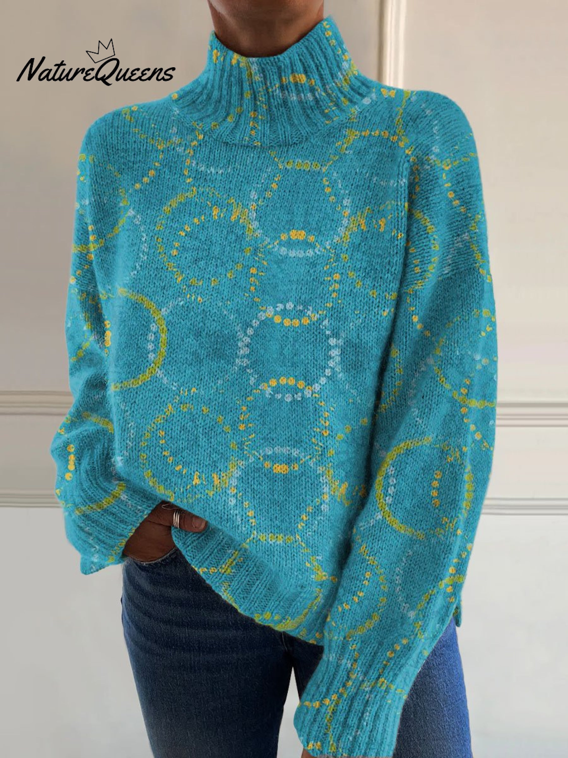 Bright Circle Art Print Knit Turtleneck Pullover Sweater