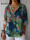 Cartoon Cat In Summer Graphic Printed Women's Casual Cotton And Linen Shirt