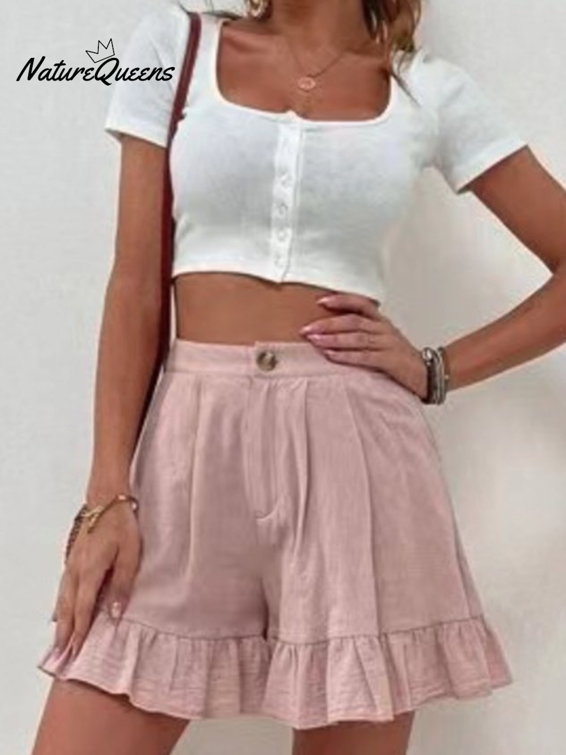 Women Summer Cotton Casual Plain Natural Ruffled Shorts