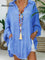Casual Solid Color Loose Irregular Long Sleeve Shirt Blue / S