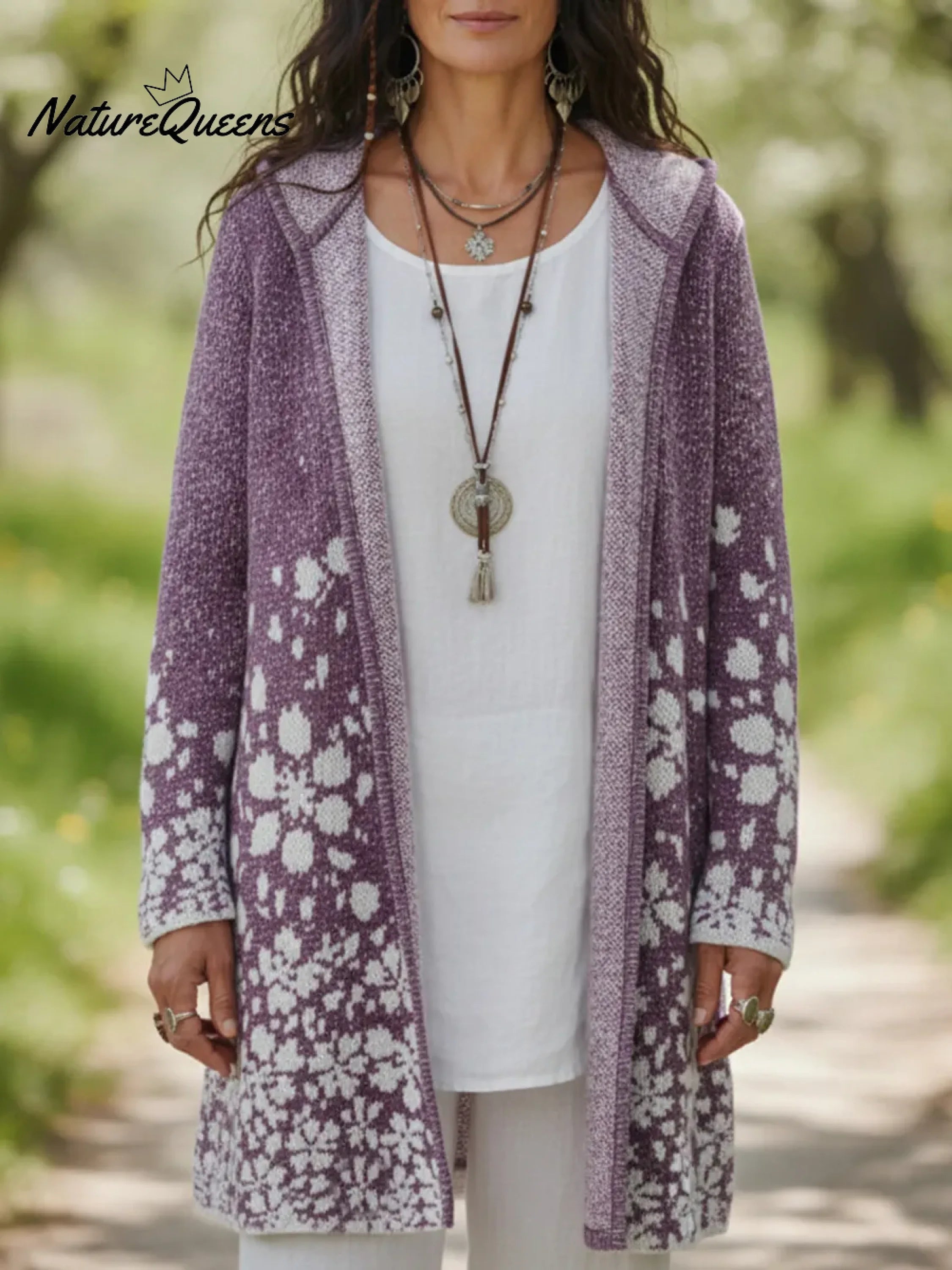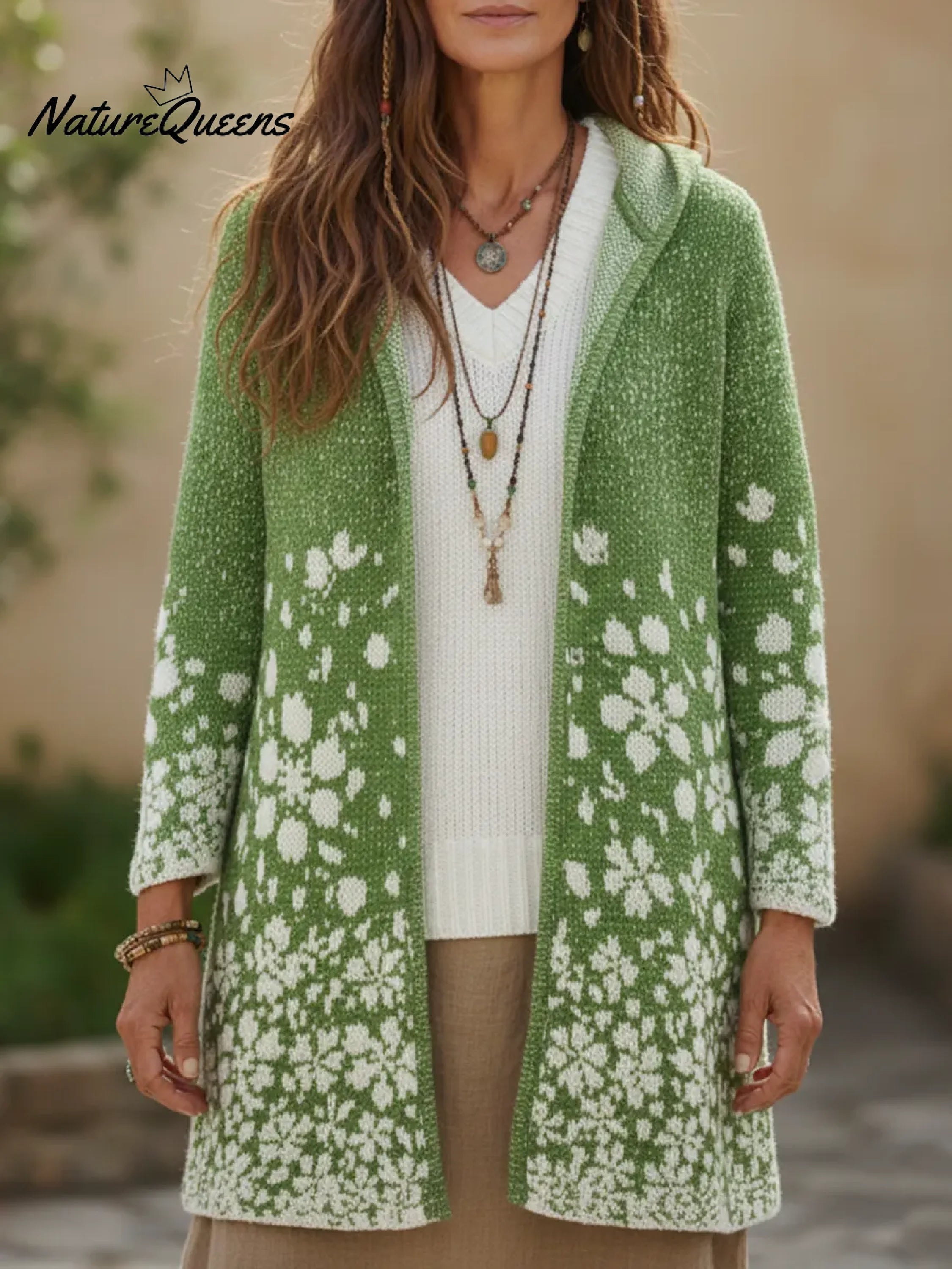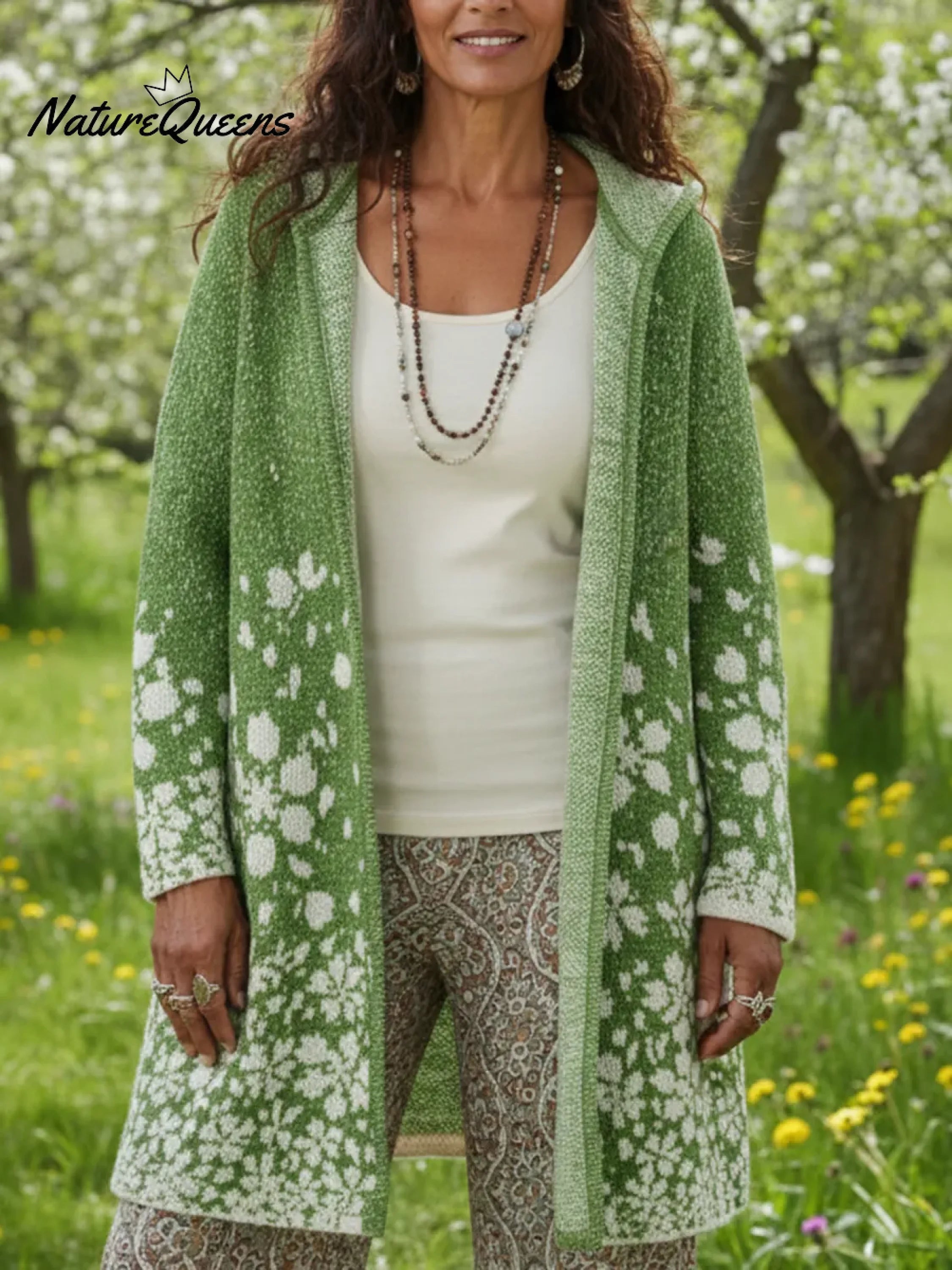 Cherry Blossom Secret Garden Hooded Knitted Cardigan
