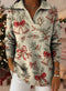 Christmas Gradient Art Pattern Polo Collar Shiny Loose Sweater Top
