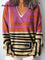Color-blocked Abstract Graphics Print Knit V-neck Pullover Sweater