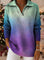 Color Gradient Tree Art Pattern Art Polo Collar Shiny Loose Sweater Top