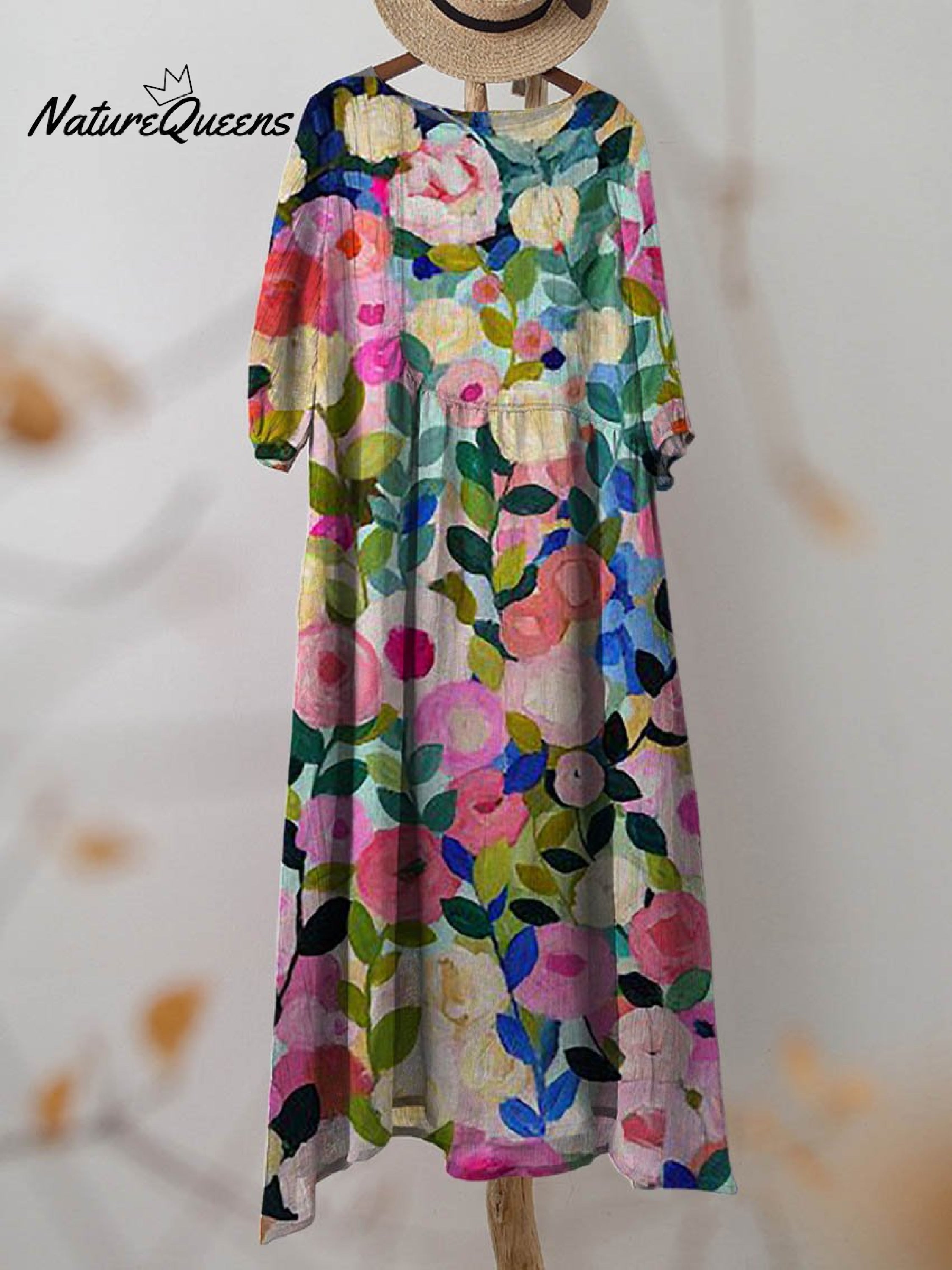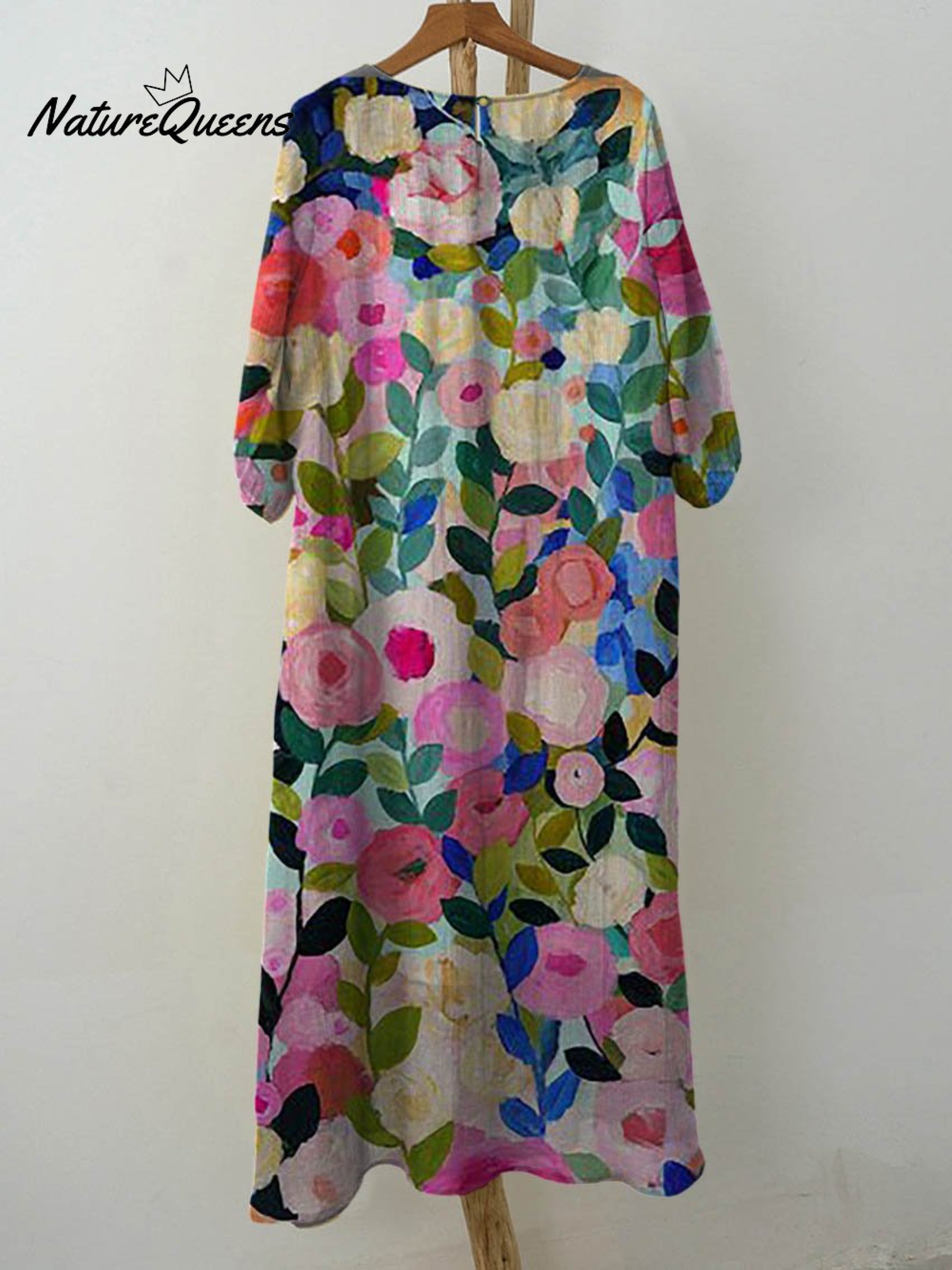 Colorful Spring Floral Garden Printed Women's Pocket Cotton Dress