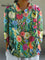 Colorful Summer Floral Art Printed Women's Casual Cotton And Linen 3/4 Sleeve Shirt