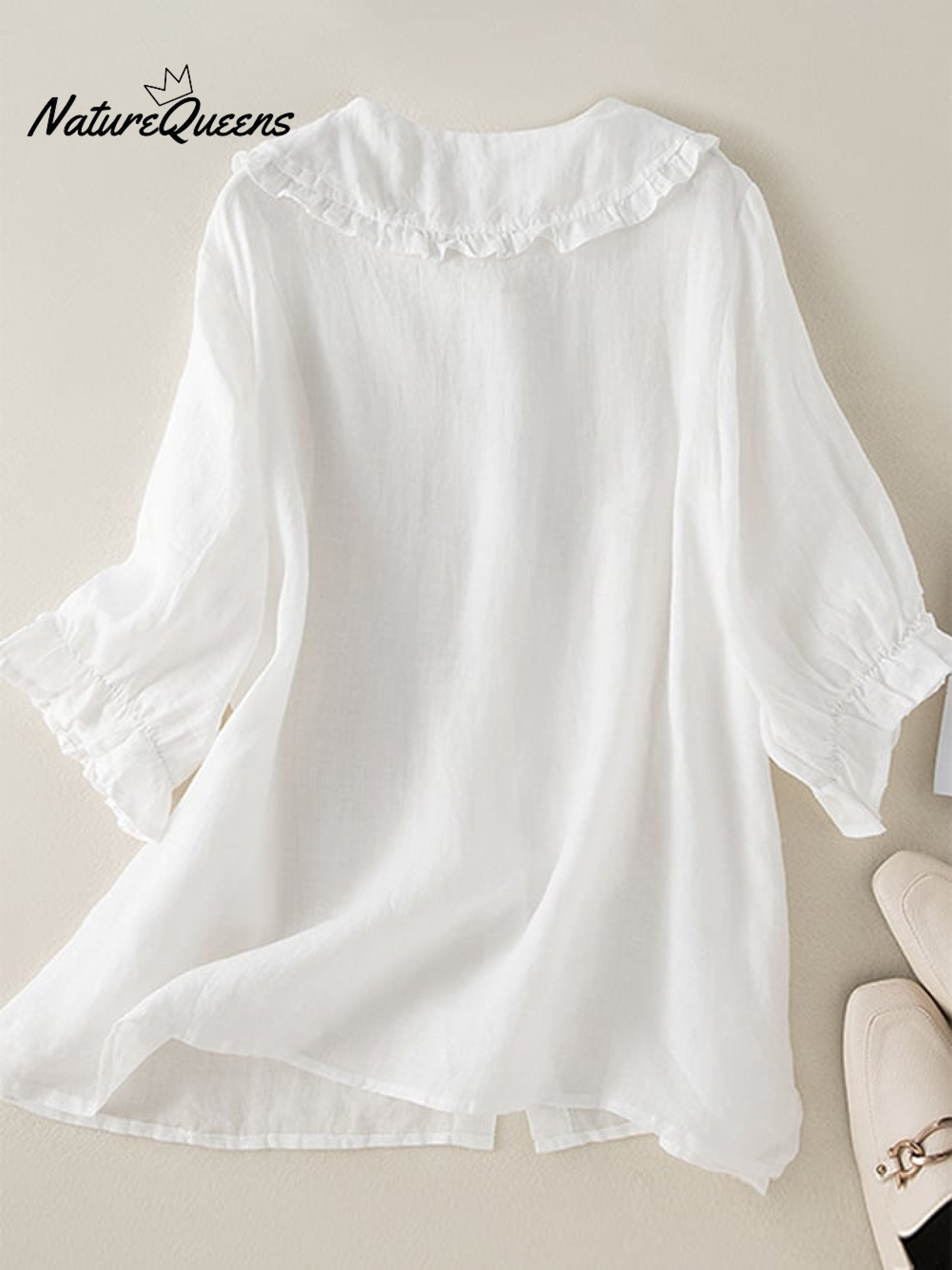 Cotton Linen Loose Peter Pan Ruffles Neck Shirt