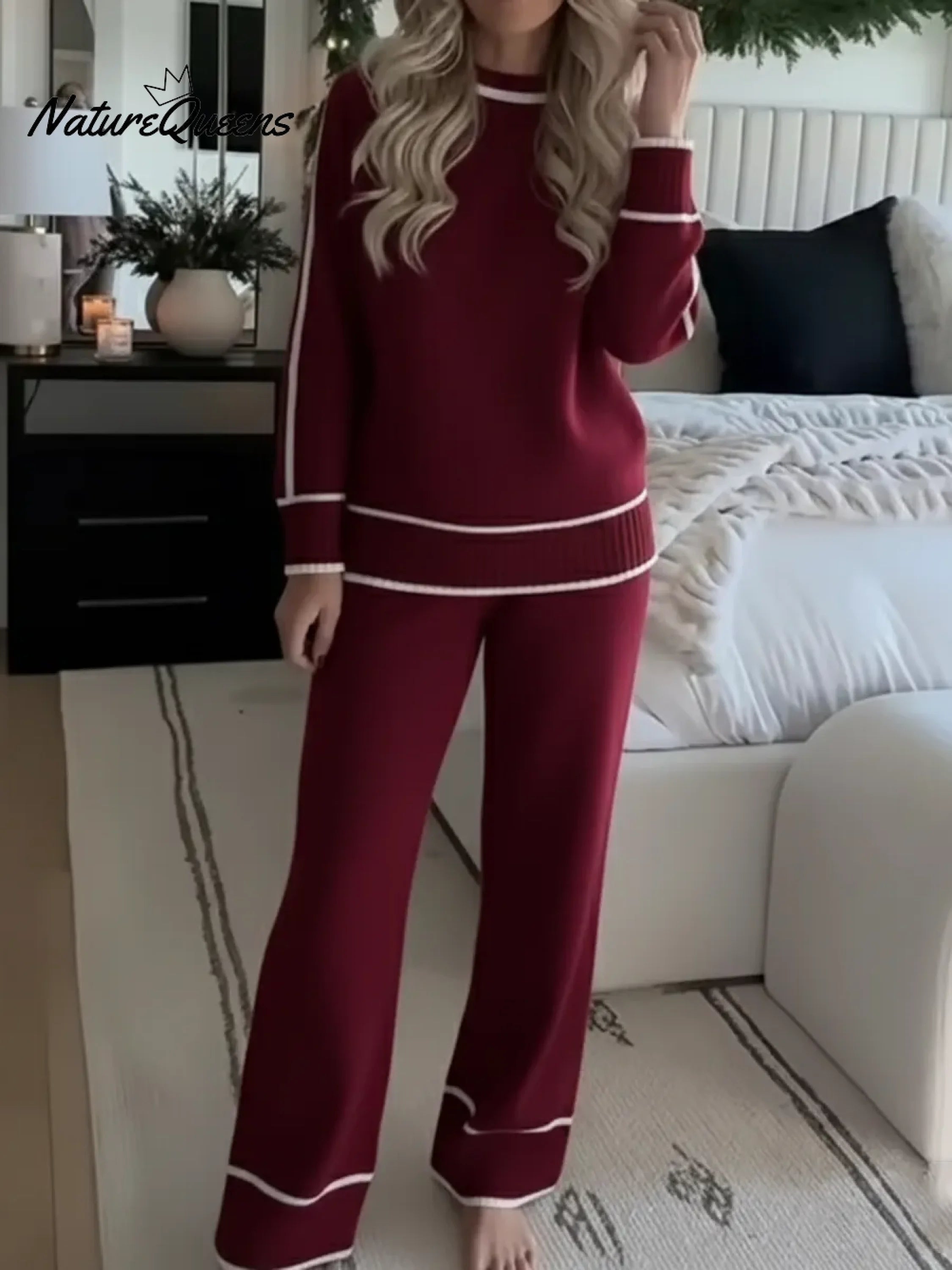 Cozy Color-blocked Trim Sweater And Pants Two-piece SetCozy Color-blocked Trim Sweater And Pants Two-piece Set