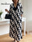 Elegant Art Print Color Block Trim V-neck Midi Dress