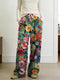 Exotic Floral Diagonal Stripe Decorative Pattern Women's Casual Pants
