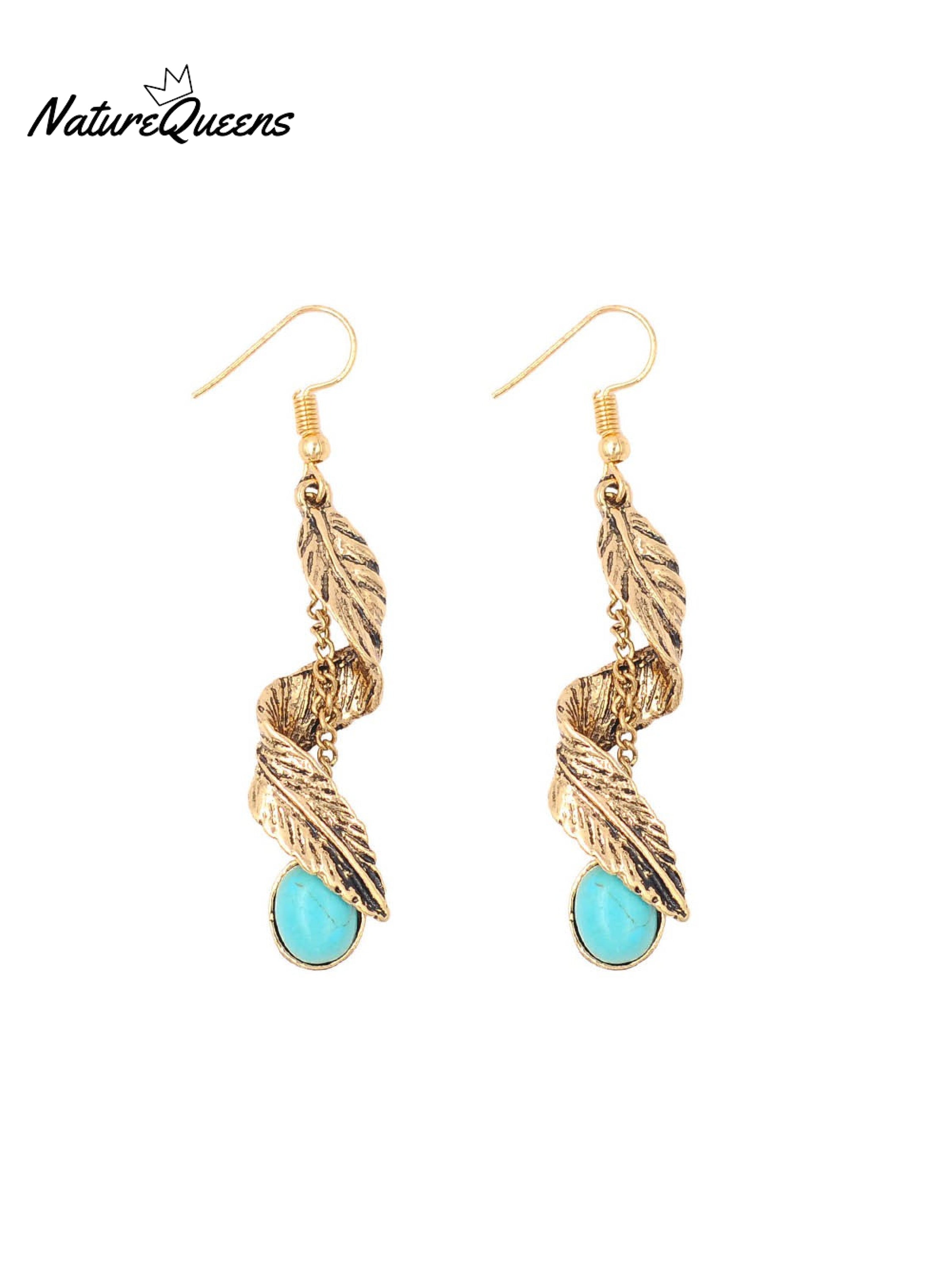 Feather Vintage Turquoise Earrings