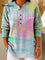 Geometric Abstract Gradient Pattern Art Polo Collar Shiny Loose Sweater Top