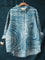 Geometric Line Pattern Printed Women's Casual Cotton And Linen Shirt
