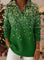 Green Christmas Print Lapel Casual Knit Sweater