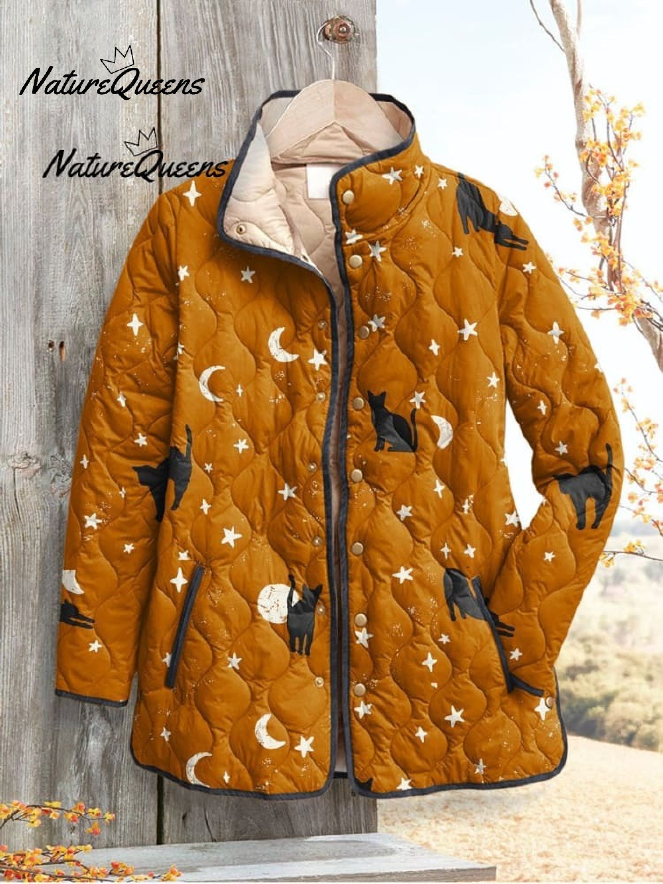 Halloween Black Cat Art Print Buttoned Cardigan Sweater