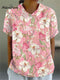 Ladies Solid Color Shirt Collar Three-quarter Sleeves Casual Cotton and Linen Shirt