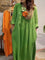 Ladies Solid Color V-Neck Casual 3/4 Sleeves Long Cotton and Linen Dress