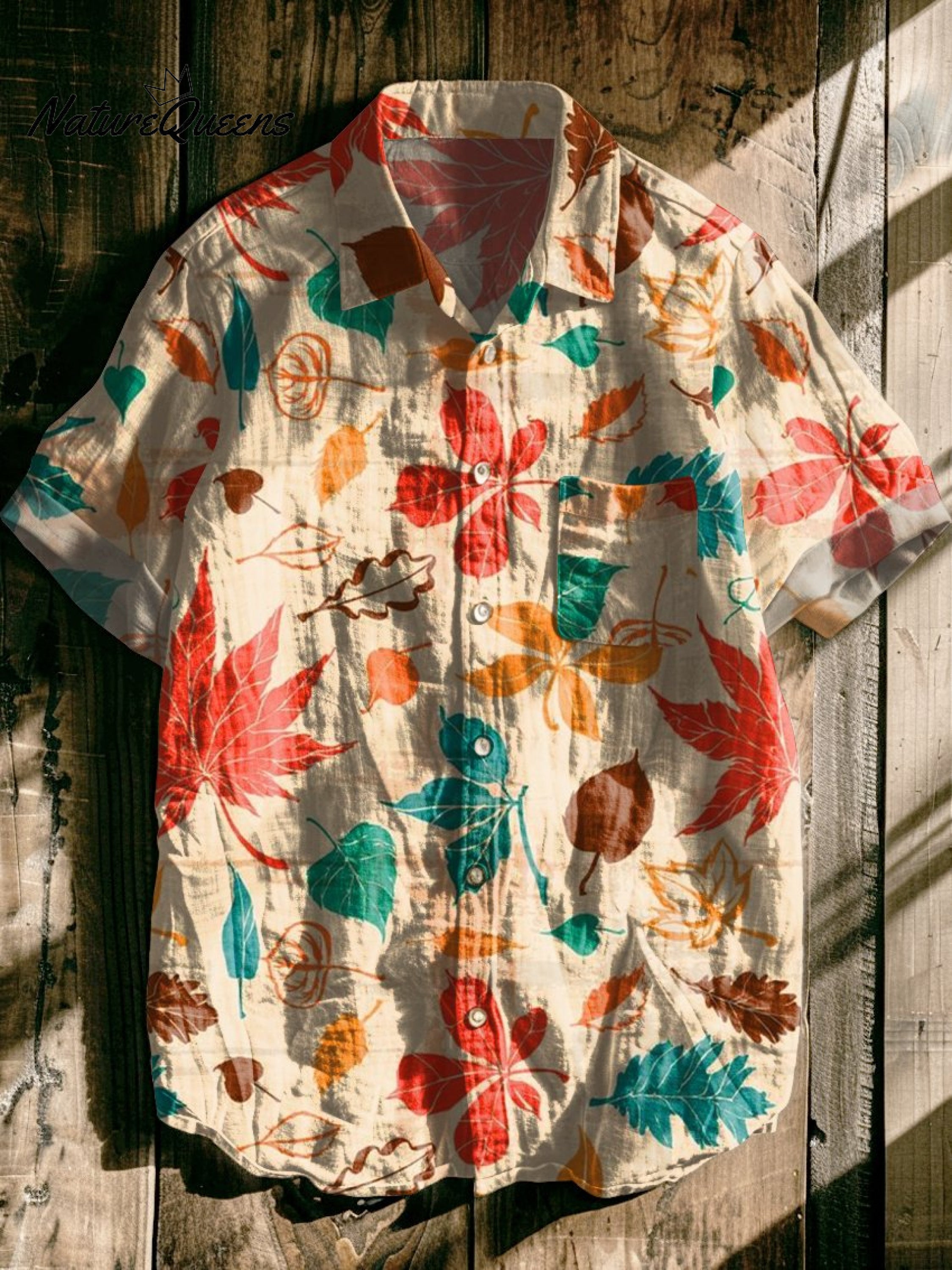 Maple Leaf Vintage Print Casual 100% Cotton Shirt
