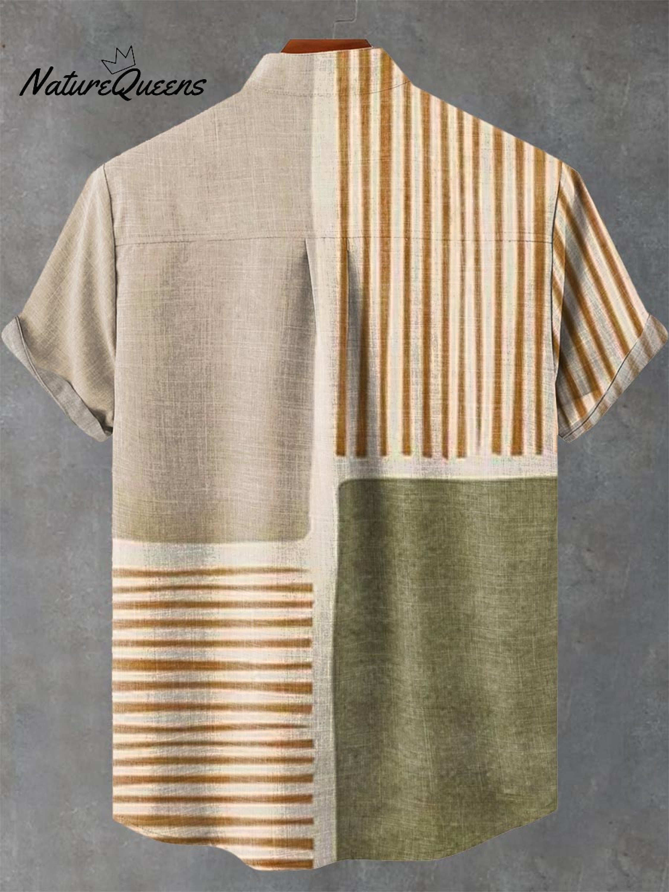 Men's Abstract Geometric Pattern Art Print Casual 100% Cotton Shirt