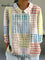 Multicolor Geometric Pattern Printed Women's Casual Cotton And Linen 3/4 Sleeve Shirt