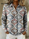 Neon Lights Christmas Snowflake Gradient Art Pattern Polo Collar Shiny Loose Sweater Top