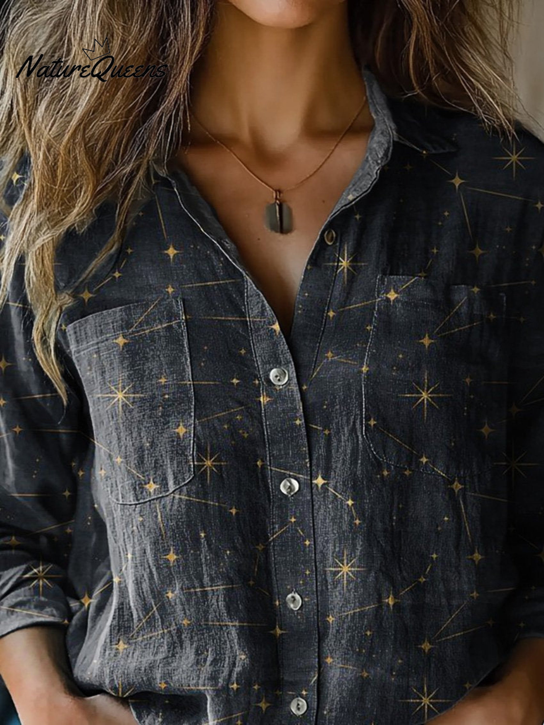 Night Sky And Star Pattern Printed Women's Casual Long Sleeve Comfortable Cotton Shirt