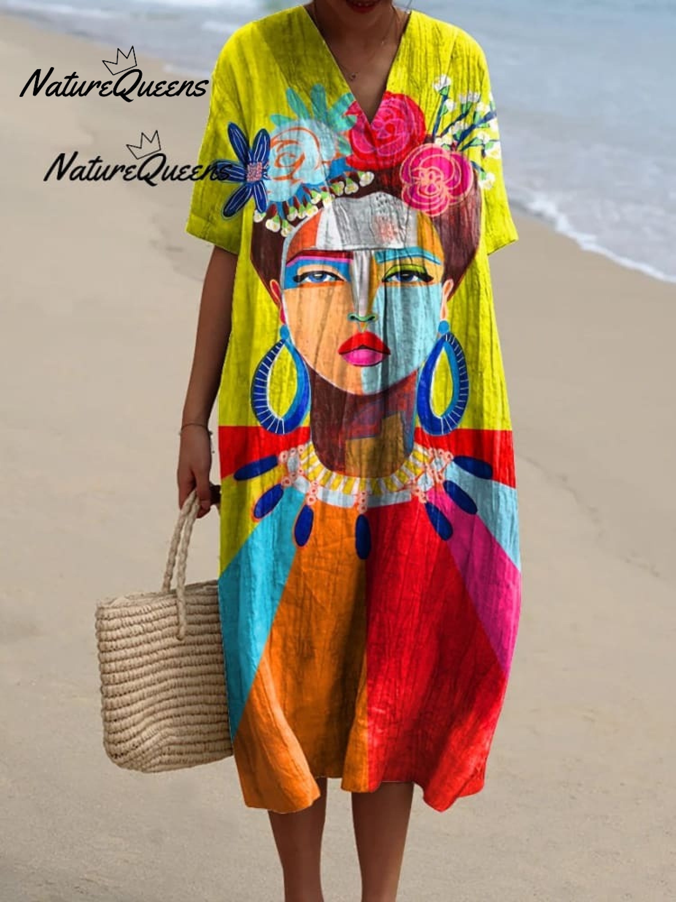 Oil Painting Freda Portrait Art Printed Women's Casual Cotton And Linen Shirt