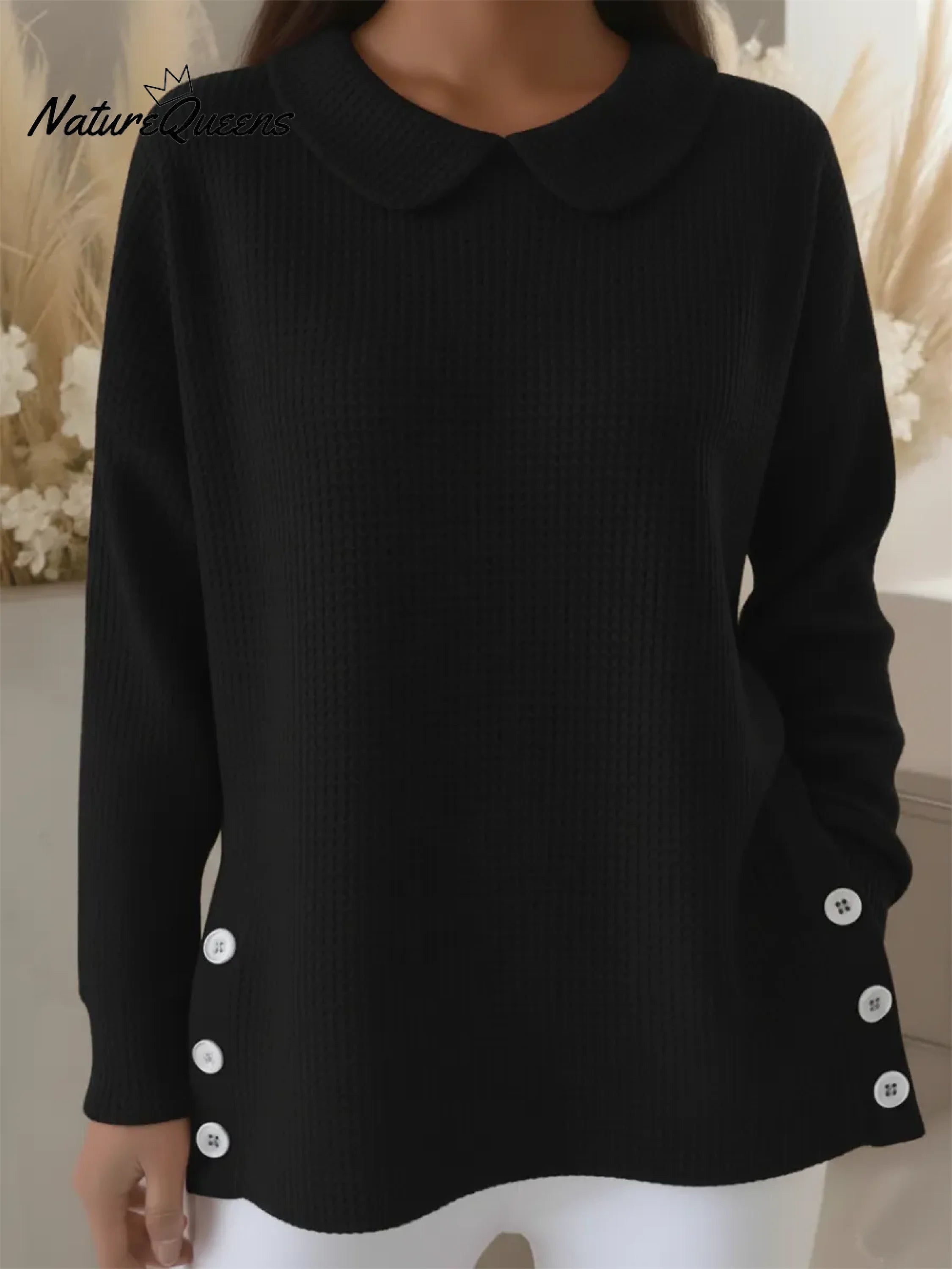 Retro Peter Pan Collar Waffle Knit Sweatshirt