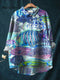 Shiny Stripes Print Lapel Casual Knit Sweater