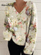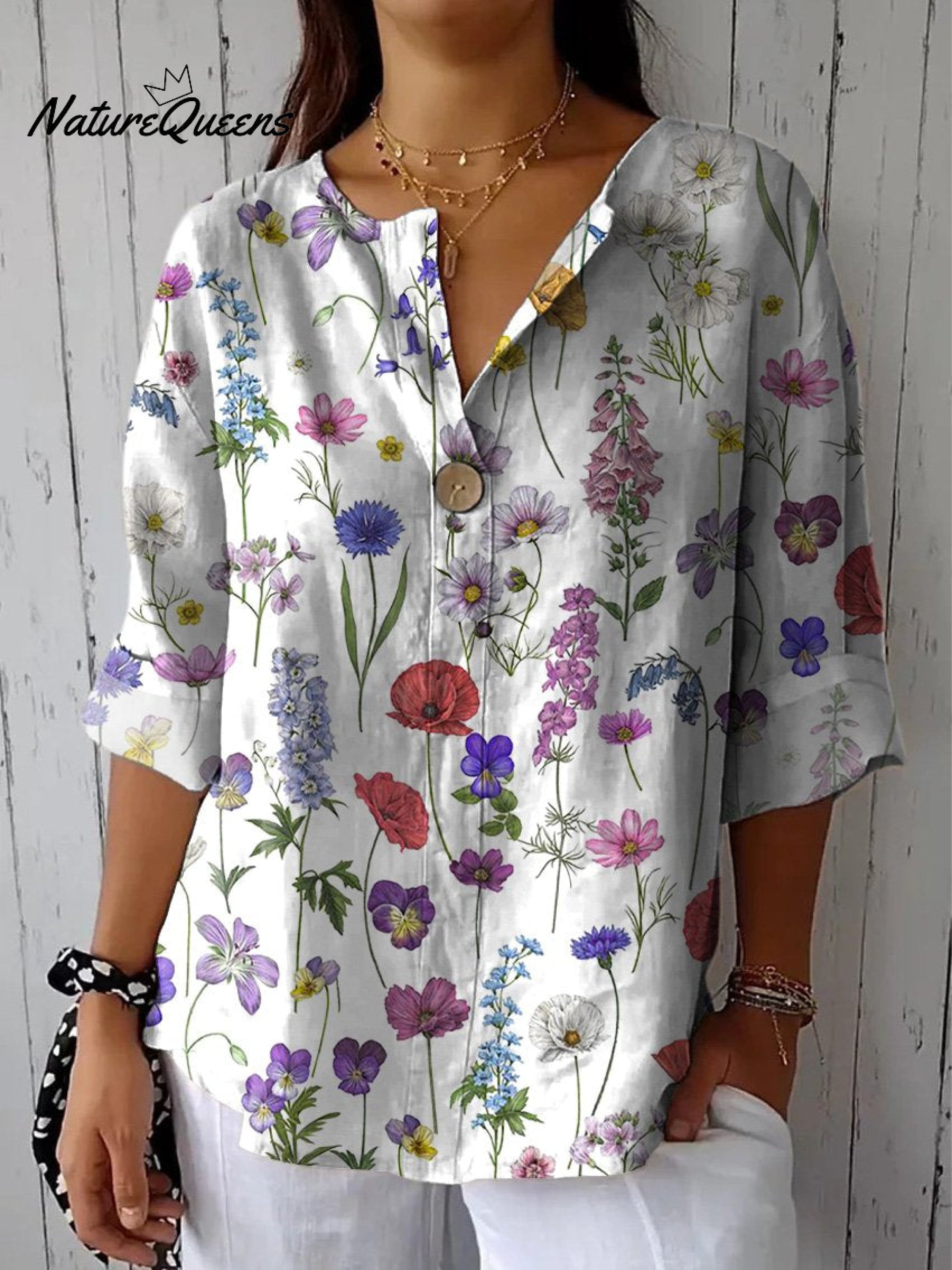 Spring Botanical Garden Pattern Printed Women's Casual Cotton Linen Shirt