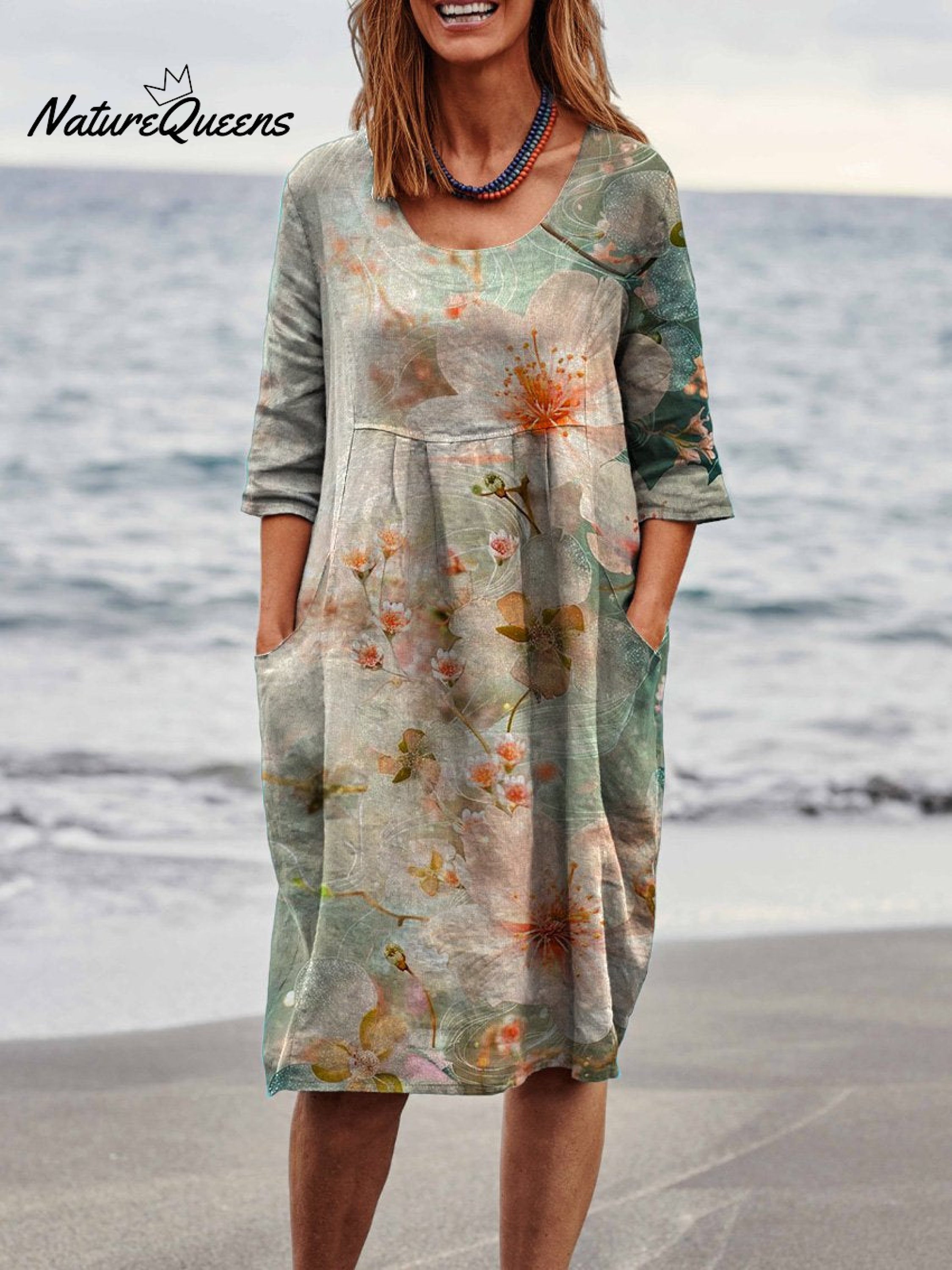 Gender: For Women Style: Casual Fit Type: Fit Shirt Length: Regular Sleeves Length: 1/2 Sleeve Collar: Round Collar Material:100% Cotton Material Stretch: Slight Stretch Pocket : Side Pocket Weight: 0.300kg Package:1 x Dress