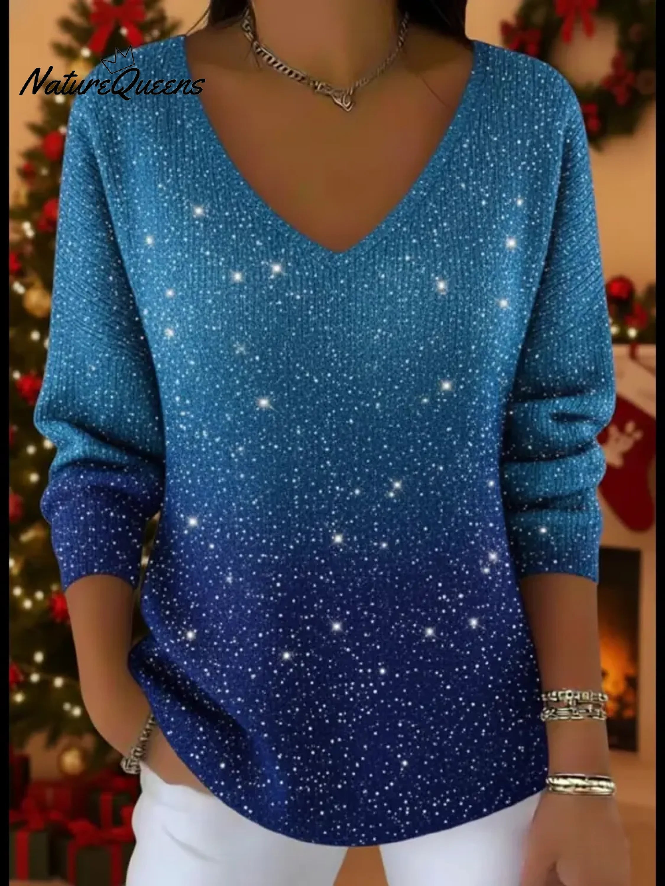 Starry Sky Shiny V-neck Loose Sweater Top