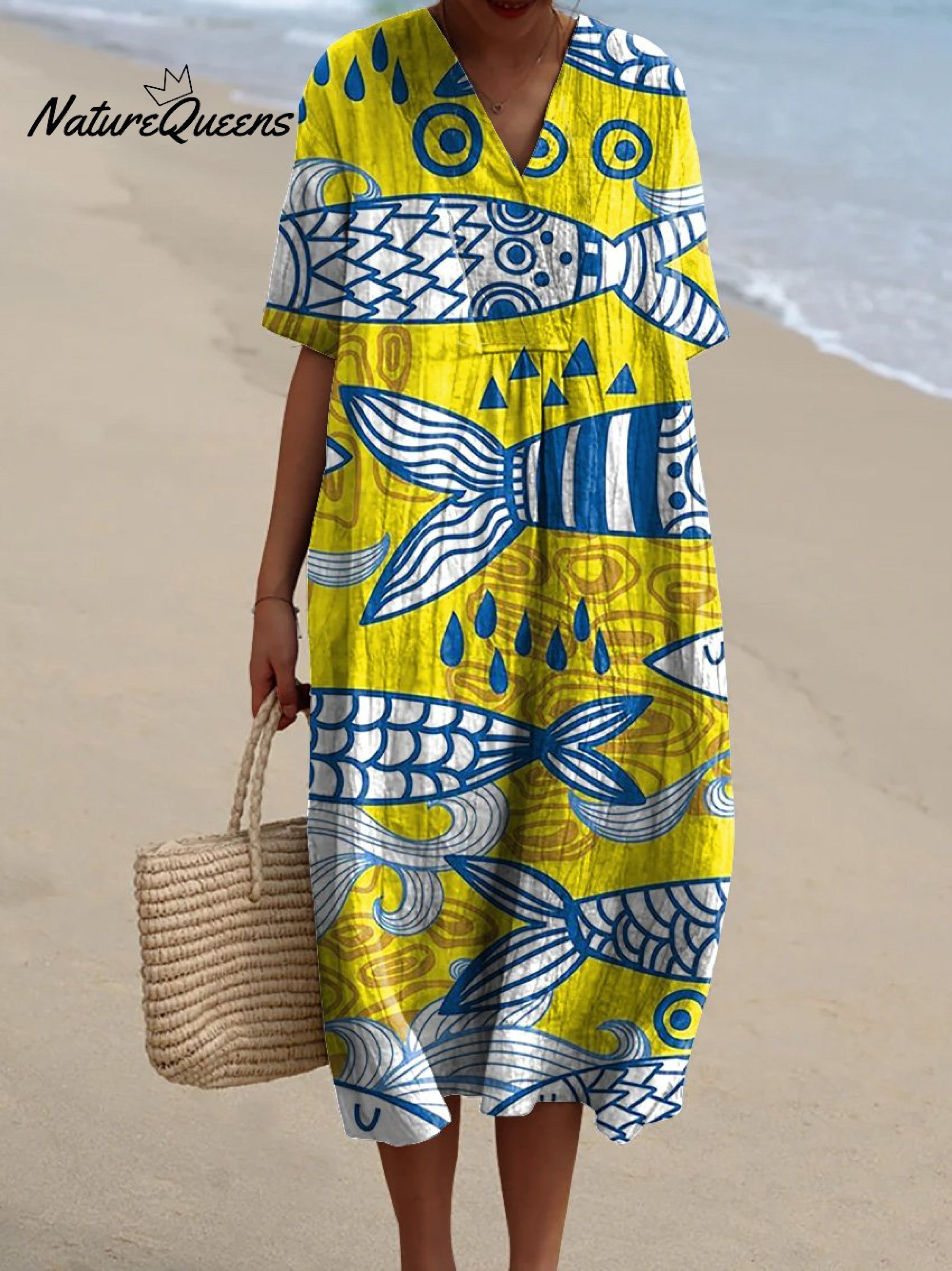 Summer Sea Fish Pattern Printed Women's Flowy Dress