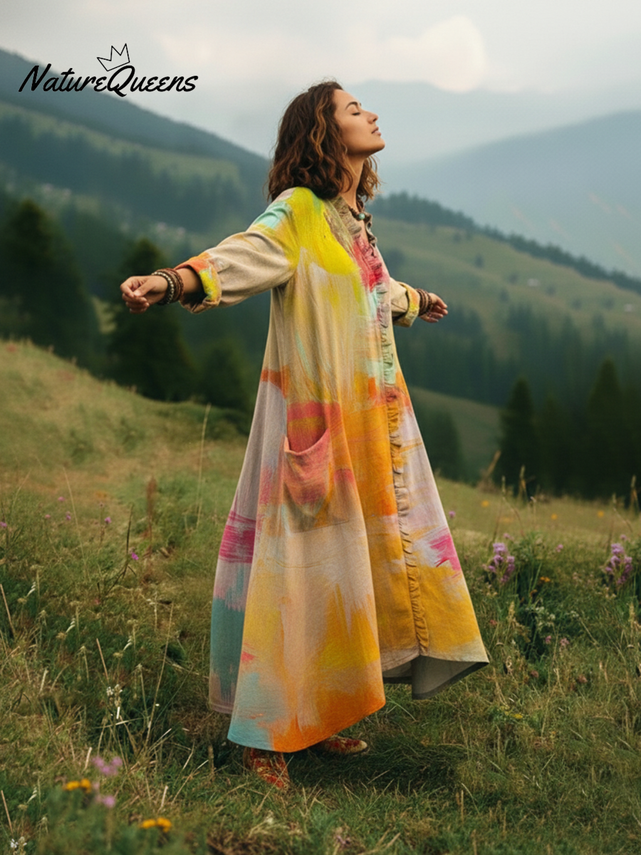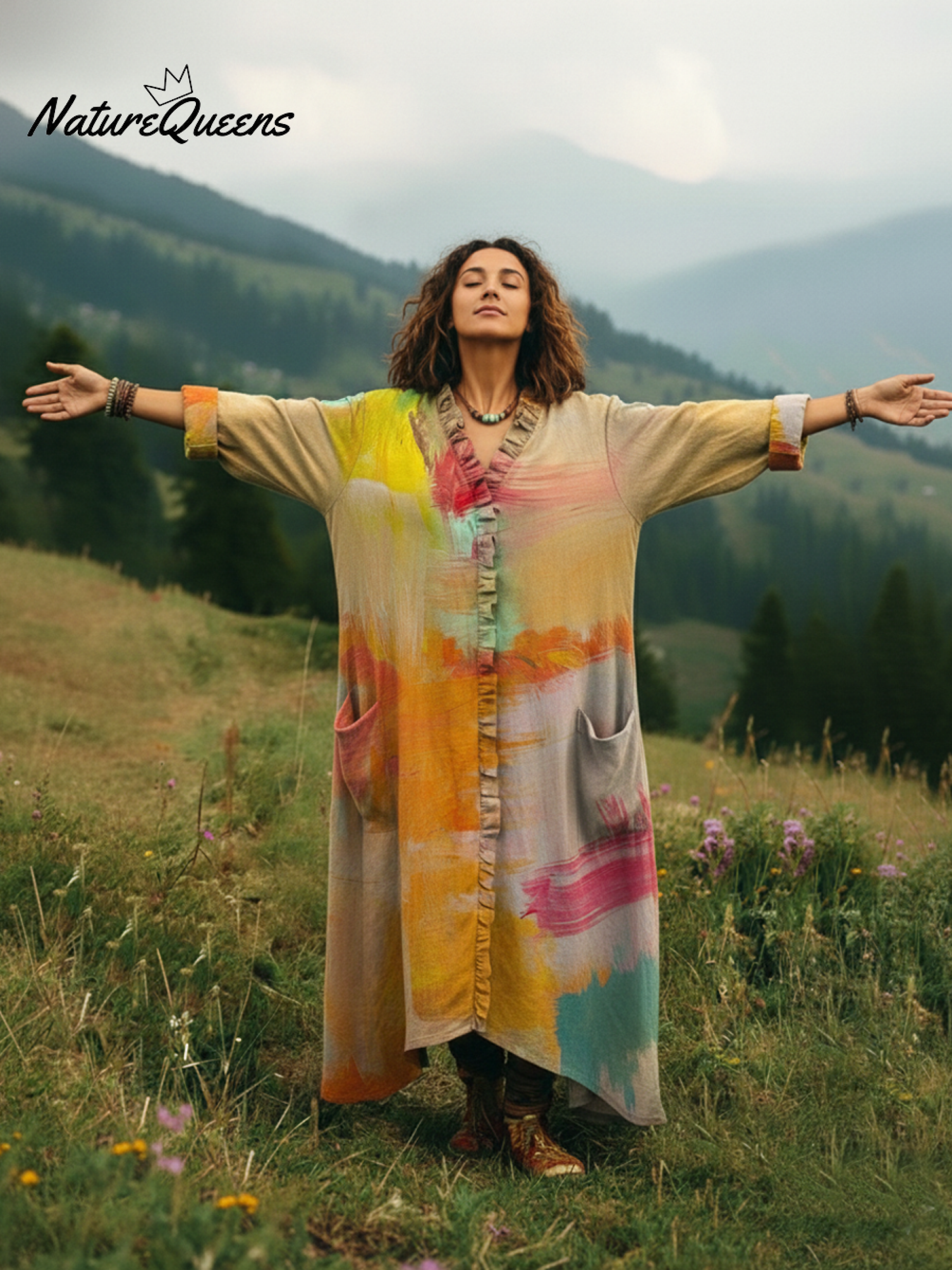 Sunset Orange Color Palette Printed Lace Trim V-neck Dress