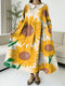 Van Gogh-style Sunflower Field Decorative Pattern Women's Casual Peter Pan Collar Long Sleeve Dress