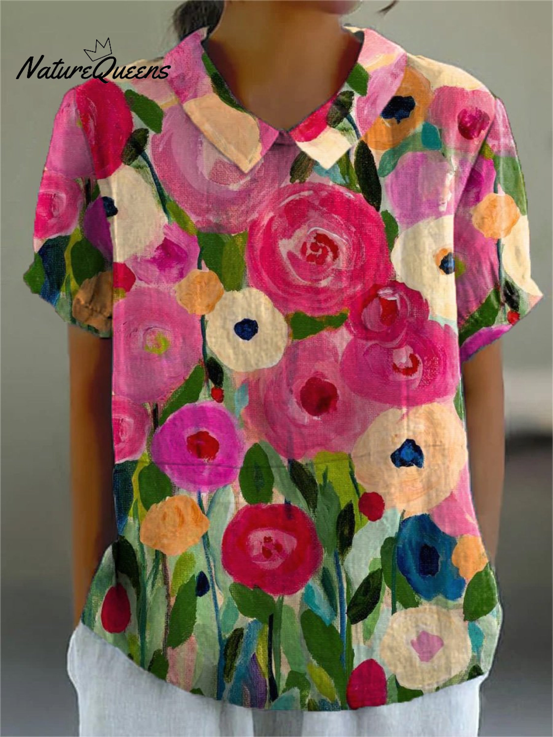 Vibrant Summer Garden Art Printed Women's Casual Cotton And Linen Shirt