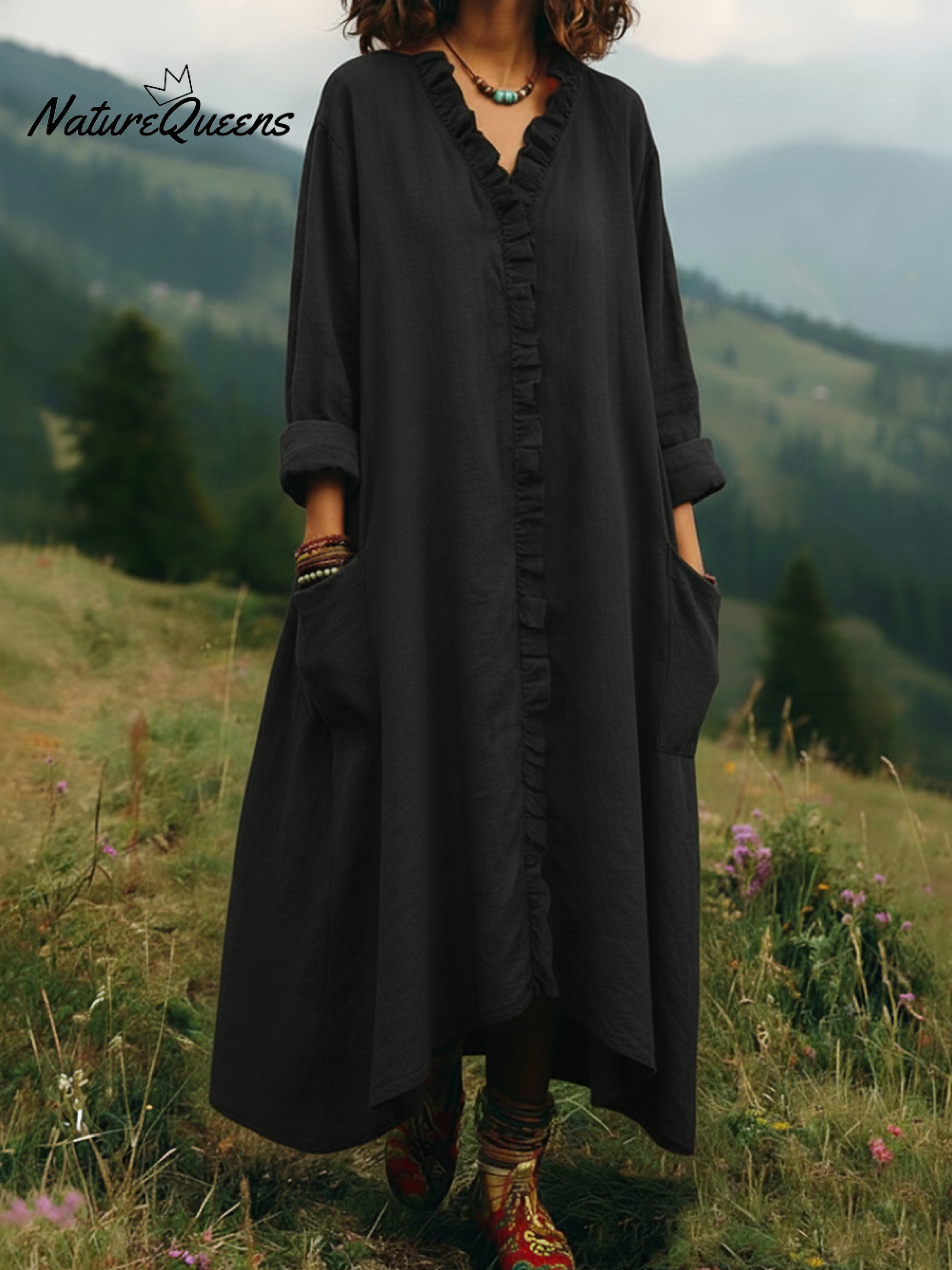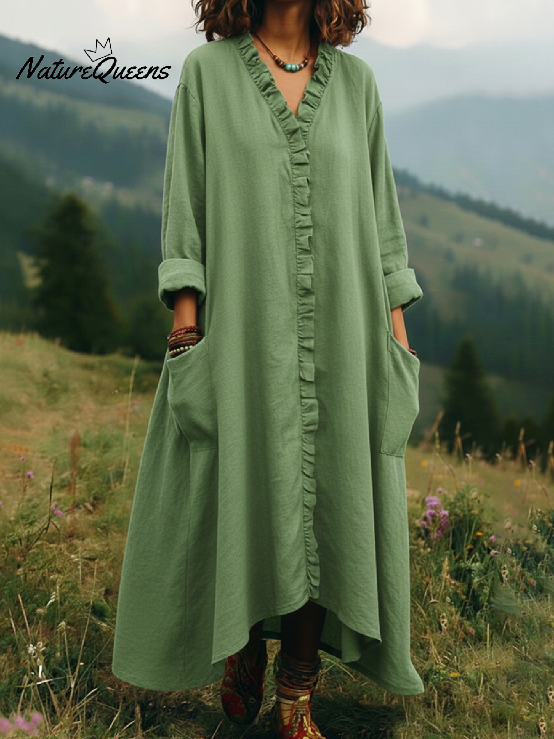 Vintage Lace V-neck Irregular Hem Dress