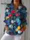 Vintage Lovely Fish Art Print Casual Cotton And Linen Shirt